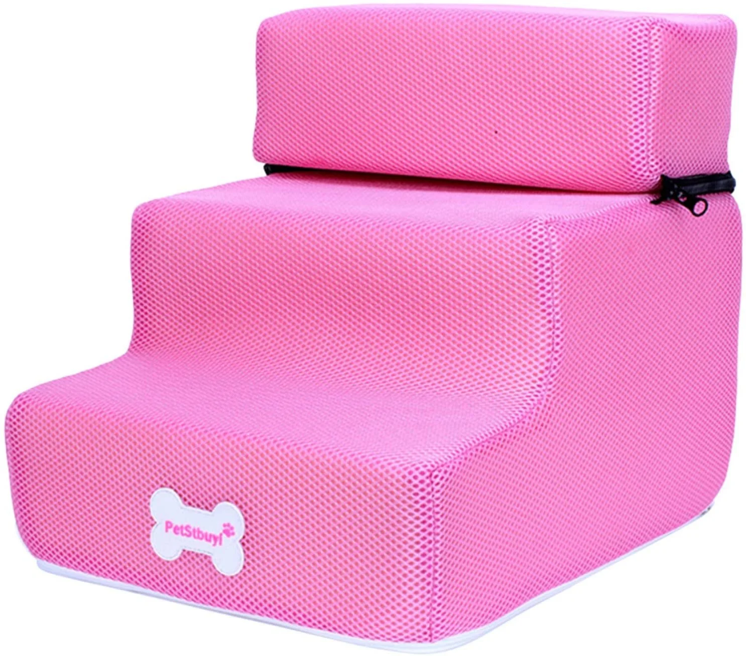 SpirWoRchlan Small Dog Cats Pet 3 Steps Removable Non-slip Ramp Climbing Detachable Bed Ladder - Black